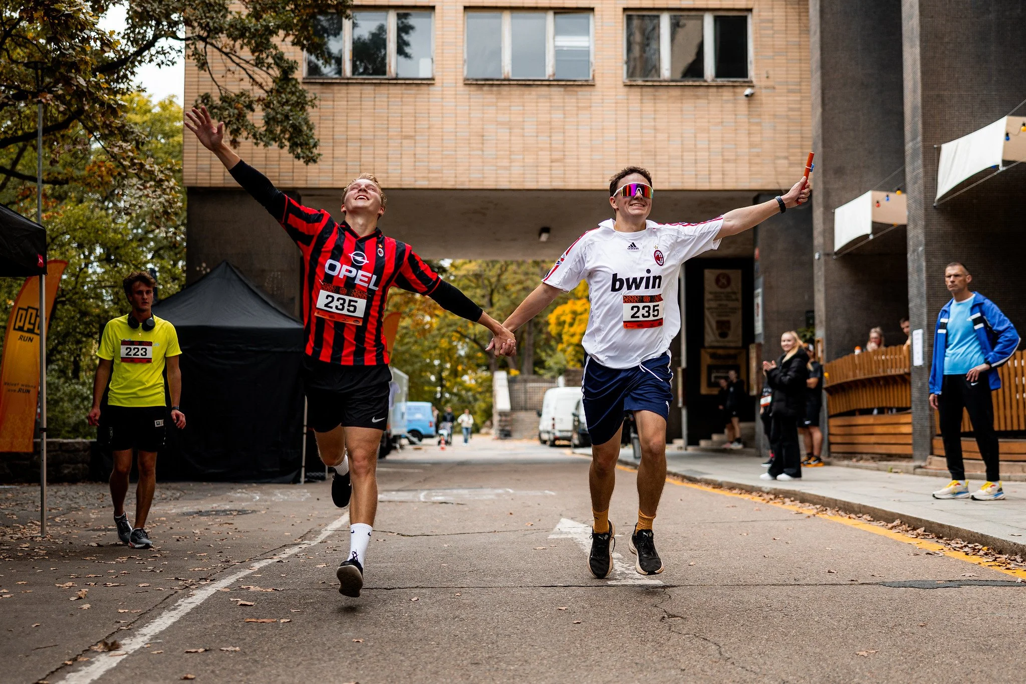 Týmový duch v srdci Prahy. Každý člen štafety bojuje za svůj tým na členitém 3km úseku (2x1,5km). Vzájemná podpora a adrenalin dělají z tohoto závodu nejatraktivnější část dne.